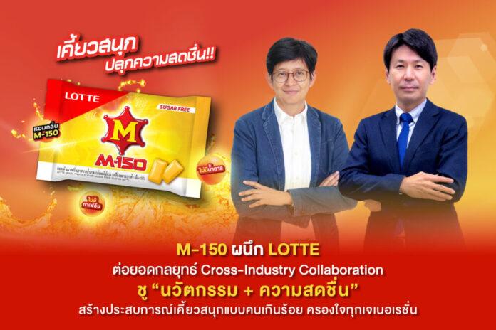 ‘M-150’ เครื่องดื่มบำรุงกำลังอันดับหนึ่งของไทย เดินหน้ากลยุทธ์ Cross-Industry Collaboration จับมือ ‘LOTTE’ แบรนด์หมากฝรั่งชั้นนำจากญี่ปุ่น เปิดตัวความร่วมมือครั้งใหม่กับผลิตภัณฑ์ “หมากฝรั่ง LOTTE x M-150 กลิ่นผลไม้รวม” ในรูปแบบ Coated Gum ปราศจากน้ำตาลและคาเฟอีน ภายใต้แนวคิด “เคี้ยวสนุก ปลุกความสดชื่น” ตอบโจทย์ผู้บริโภคยุคใหม่ที่มีไลฟ์สไตล์แอคทีฟ ต้องการความสดชื่นระหว่างวันในรูปแบบที่สะดวก