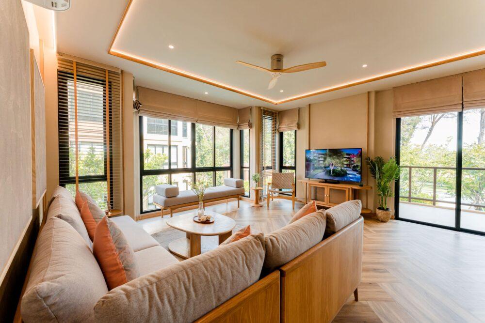 รูปแบบของห้องพักที่นี่ยังมีหลากหลาย Type ให้เลือก ซึ่งในวันนี้จะพามาชมในส่วนของแบบห้องที่เป็นไฮไลท์ของโครงการกัน ซึ่งคือแบบห้อง 2 และ 3 ห้องนอน มีขนาดพื้นที่ใช้สอยเริ่มต้นที่ 74 -160 ตารางเมตร นับว่าเป็นขนาดห้องพักที่สามารถรองรับการพักผ่อนของครอบครัวได้เป็นอย่างดี เน้นการใช้วัสดุธรรมชาติ ด้วยดีไซน์ทรอปิคอลมีความเรียบง่ายและกลมกลืนกับธรรมชาติมาผสมผสานในการออกแบบ