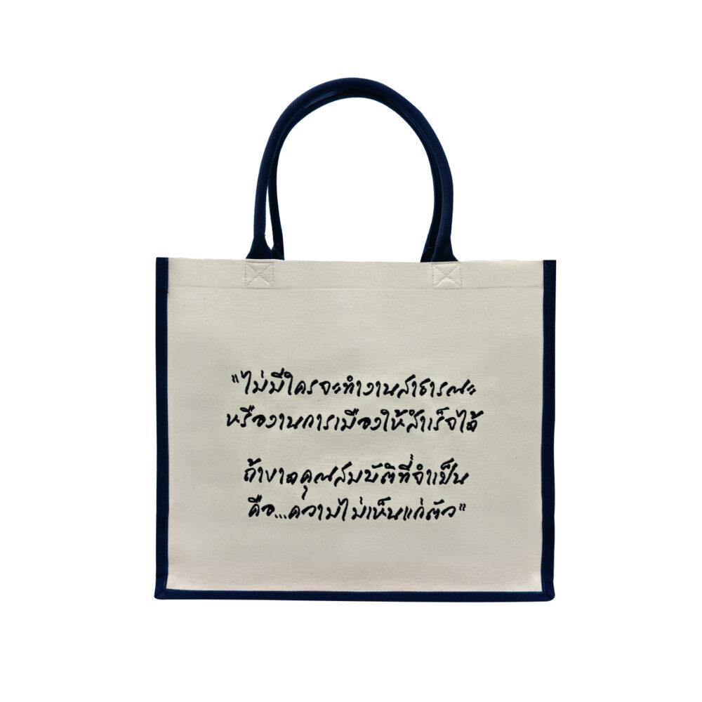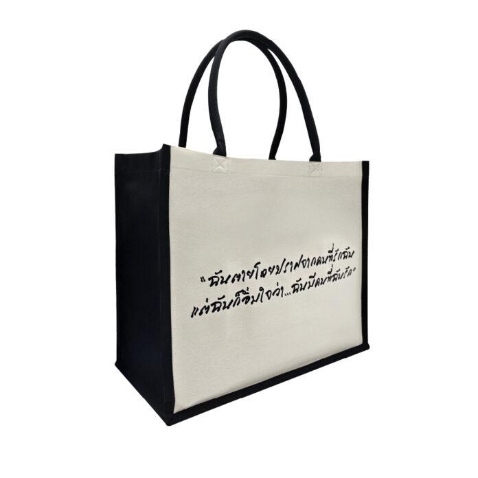 กระเป๋าผ้าที่เป็นมากกว่ากระเป๋าผ้าทอ ออกแบบภายใต้แนวคิด “ผืนผ้าที่บอกเล่าเรื่องใจ” โดย PASAYA ได้ถักทอวลีอมตะจากบทประพันธ์ของศรีบูรพาลงบนเนื้อผ้าอย่างประณีต
