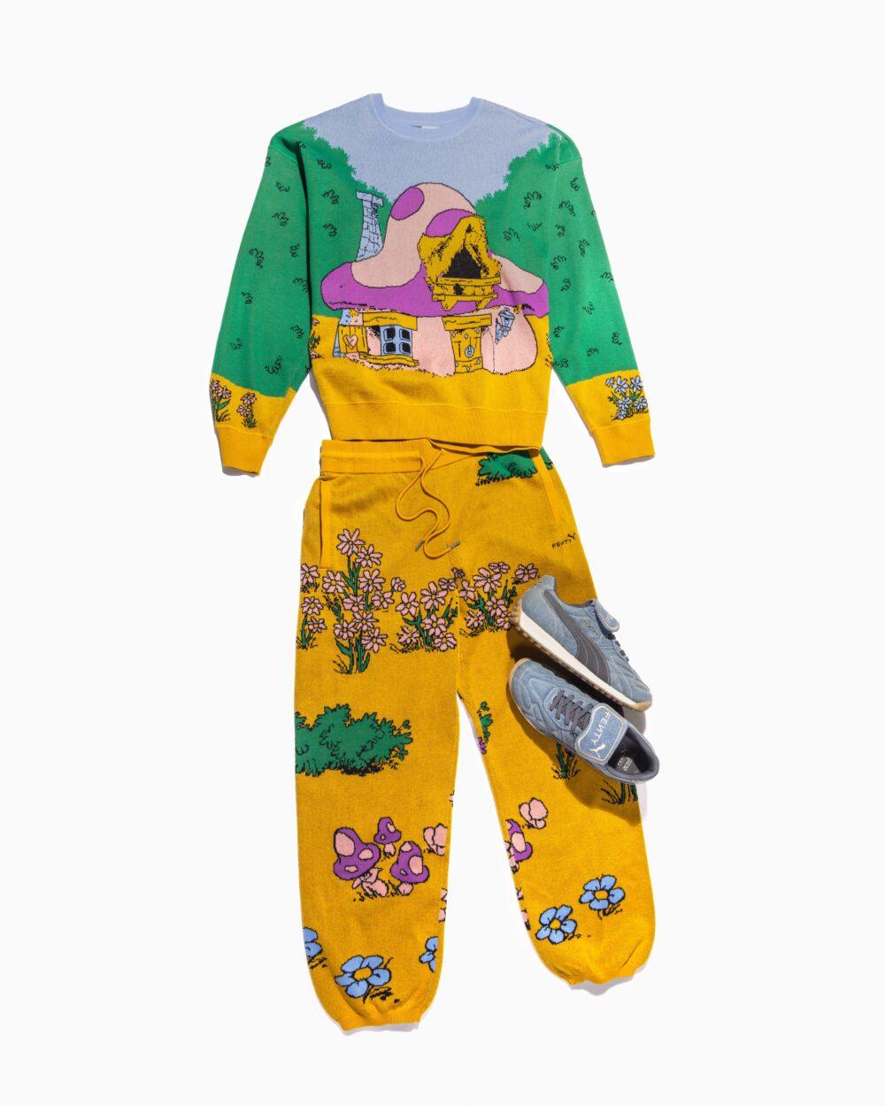 คอลเล็กชันนี้หยิบเอาความน่ารักแบบ Smurf มาตีความผ่านดีไซน์สนุกๆ อย่างเสื้อสเว็ตเตอร์ถักโอเวอร์ไซซ์สุดอบอุ่นที่มีลายบ้านเห็ดของ Smurfette (ราคา 6,700 บาท) กางเกงวอร์มถัก (ราคา 6,200 บาท) และสนีกเกอร์รุ่นคลาสสิก Avanti ของ Rihanna ที่มาในโทนเดนิมใหม่ มีทั้งไซส์ผู้ใหญ่และเด็กให้เลือกสวมใส่ร่วมกันได้อย่างมีสไตล์ (ราคา 4,200 บาท)