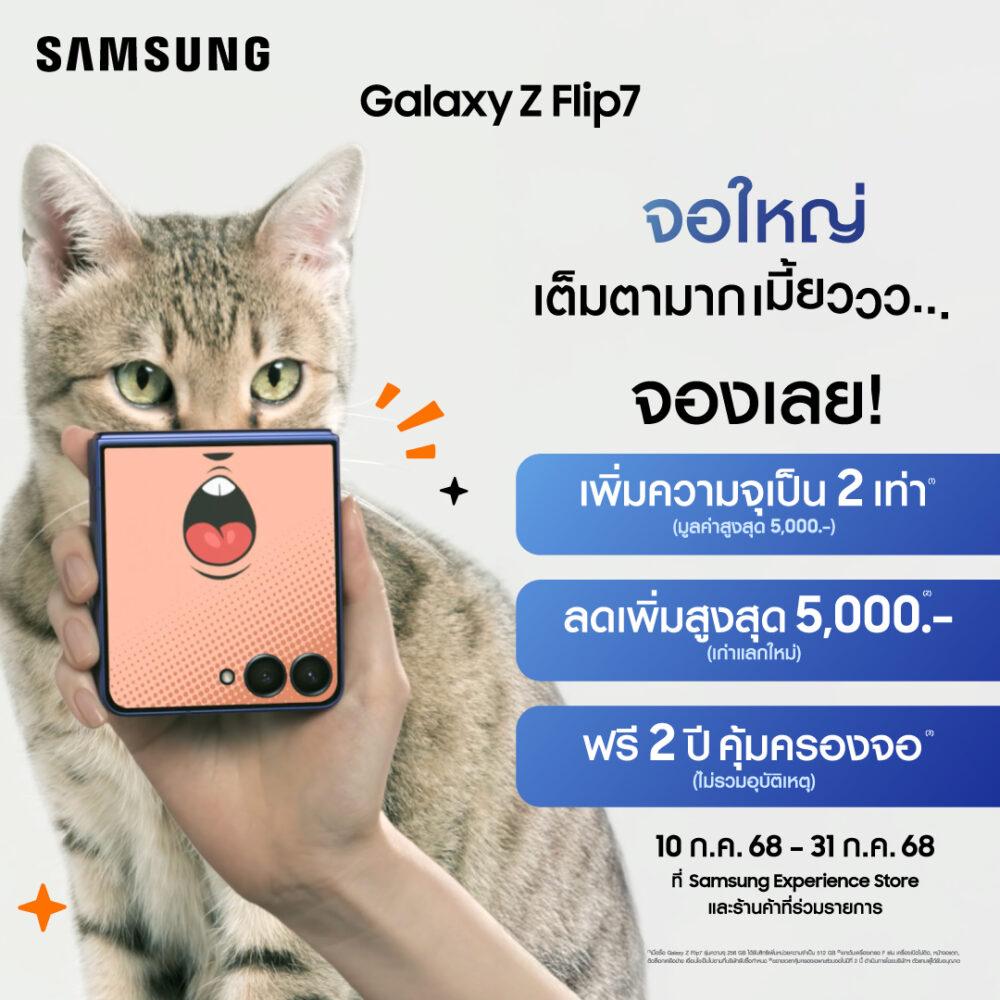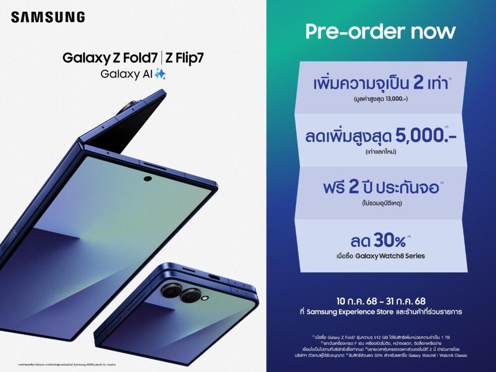 สั่งจองล่วงหน้าได้แล้ว ตั้งแต่วันนี้ – 31 ก.ค. 68 ที่ Samsung Experience Store ร้านค้าที่ร่วมรายการ และสั่งซื้อออนไลน์ทาง https://bit.ly/pr_buy_z-fold7-flip7 หรือดูรายละเอียดเพิ่มเติมที่ https://bit.ly/pr-preorder_z-fold7-flip7