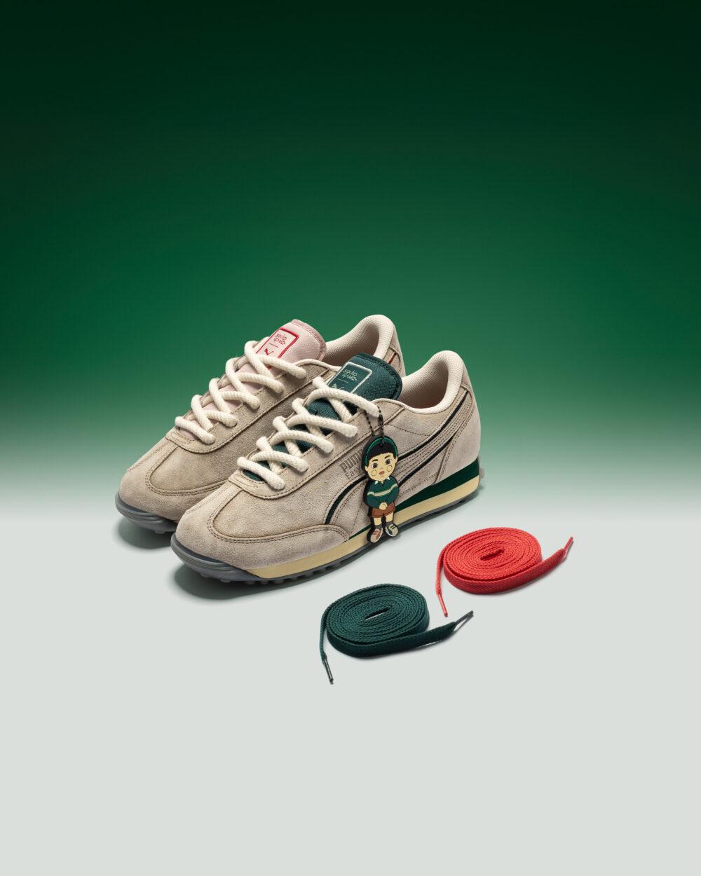 สำหรับรองเท้า PUMA ได้ปรับดีไซน์รองเท้าทรงโลว์โปรไฟล์รุ่น Palermo และ Easy Rider ใหม่ โดยทั้งสองรุ่นมาพร้อมดีเทลแน่นๆ และโลโก้บนลิ้นรองเท้าที่สื่อถึงแรงบันดาลใจจากซีรีส์ รุ่น Easy Rider โดดเด่นด้วยดีไซน์สีแดงและสีเขียวแบบ พร้อมแท็กห้อยรูปชอลซูสุดพิเศษ ส่วนรุ่น Palermo ตกแต่งด้วยการเย็บตัดกันทั่วตัวรองเท้า เสริมลูกเล่นด้วยจิวเวลรีลูกไม้ประดับเชือกรองเท้า และแท็กห้อยรูปกุญแจที่เป็นเอกลักษณ์