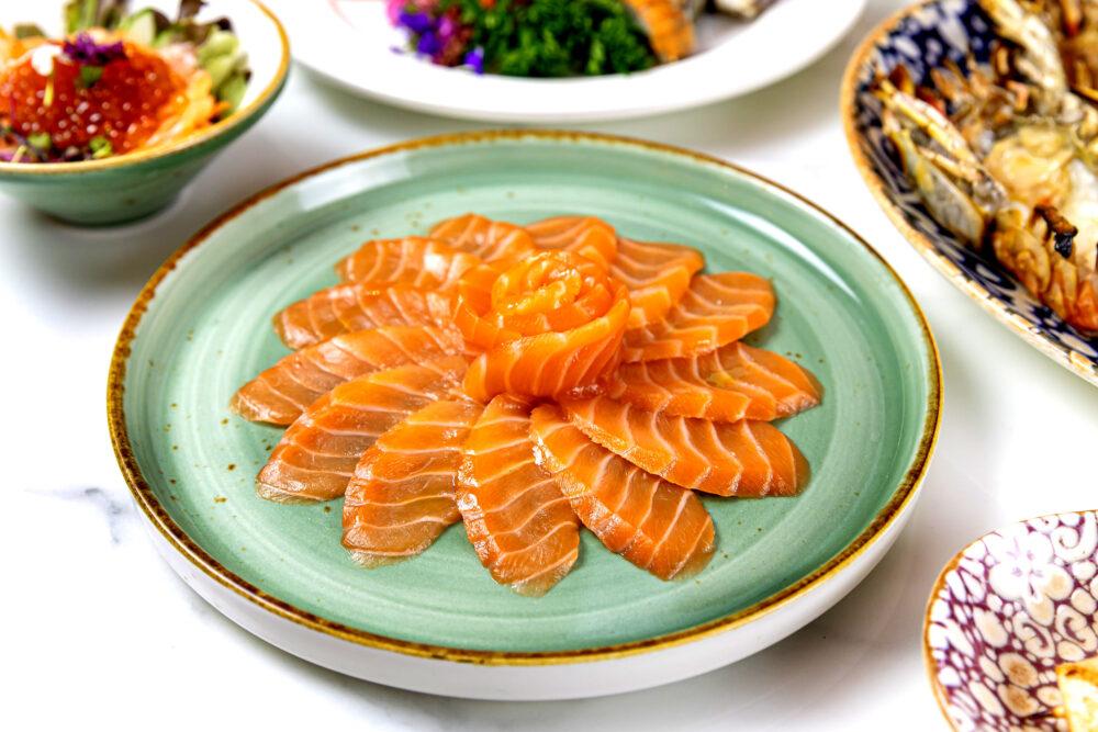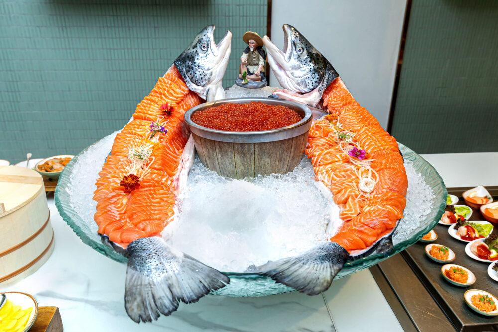อาทิ ปลาแซลมอนสด และไข่ปลาแซลมอน, ซีฟู้ดออนไอซ์ กุ้งแม่น้ำ กั้ง หอยแมลงภู่ และ กุ้ง, ซูชิและซาชิมินานาชนิด กุ้งเทมปุระ, แซลมอนสไปซี่, ท้องแซลมอนเบิร์นไฟ, แซลมอนดองซีอิ๊ว, กุ้งแม่น้ำเผา, พิซซ่าแซลมอนรมควัน