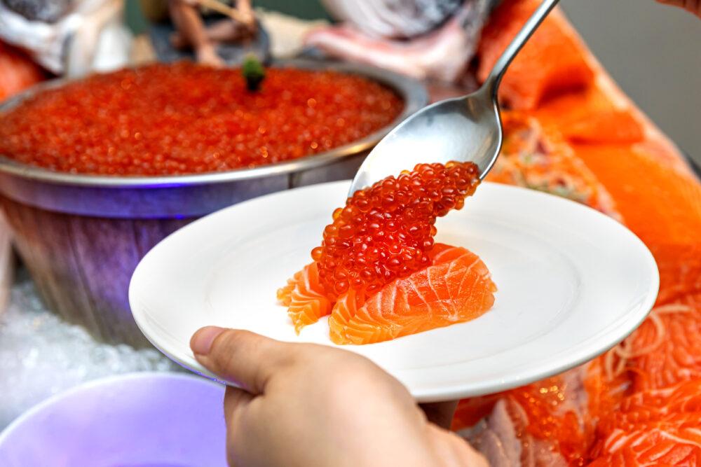 เหล่าพาเหรดความสดใหม่จากท้องทะเล พร้อมอาหารนานาชาติ และเมนูไฮไลท์สีชมพูแบบไม่อั้นกับเมนูปลาแซลมอน กุ้ง และไข่ปลาแซลมอน รวมถึงเมนูอาหารสีชมพูมากมาย