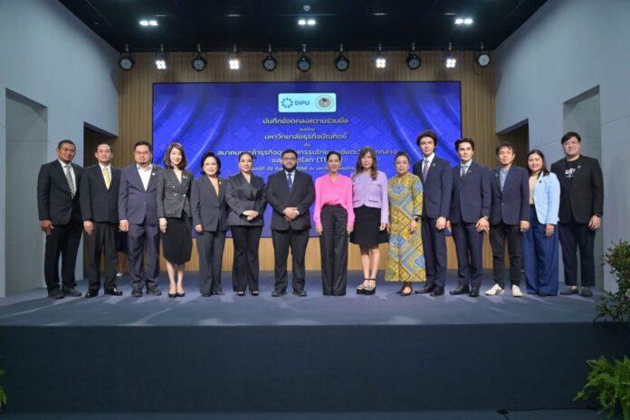 ฮาลาลในภูมิภาค โดยมี ดร. ดาริกา ลัทธพิพัฒน์ อธิการบดีมหาวิทยาลัยธุรกิจบัณฑิตย์ ดร. อาลี คาน รองเลขาธิการคณะกรรมการกลางอิสลามแห่งประเทศไทย ดร. มูหัมหมัดอามีน เจะหนุ ผู้อำนวยการสถาบันมาตรฐานฮาลาลแห่งประเทศไทย และคุณกัญญภัค ปรัชญากุลวรา นายก TBMA พร้อมด้วย ผู้บริหารและคณาจารย์ DPU ร่วมในพิธีลงนามความร่วมมือดังกล่าว ณ ห้องสุทธิเกตุ (7-1) อาคาร 7 ชั้น 1 มหาวิทยาลัยธุรกิจบัณฑิตย์