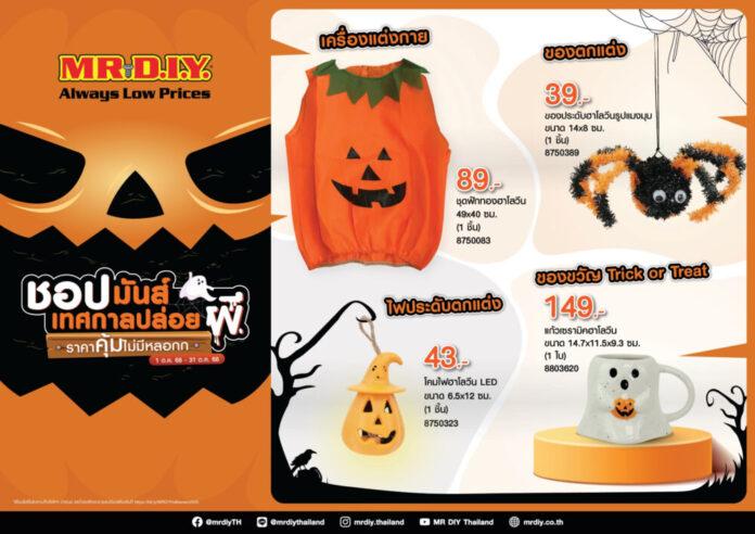 ในปีนี้ มิสเตอร์. ดี.ไอ.วาย. ได้คัดสรรและขนทัพสินค้าไฮไลต์ฮาโลวีน “ชอปมันส์เทศกาลปล่อยผี ราคาคุ้มไม่มีหลอก”(1) กว่า 130 รายการ อาทิ ของประดับฮาโลวีนรูปแมงมุม ราคา 39 บาท โคมไฟฮาโลวีน LED ราคา 43 บาท ชุดฟักทองฮาโลวีน ราคา 89 บาท และแก้วเซรามิกฮาโลวีน ราคา 149 บาท ณ ร้านมิสเตอร์. ดี.ไอ.วาย. สาขาที่ร่วมรายการ(2) ซึ่งพร้อมมอบประสบการณ์ชอปปิงที่สะดวกสบายในราคาถูกคุ้มเสมอ (Always Low Prices) เพื่อให้ตอบโจทย์ทุกความต้องการของลูกค้าในการสร้างบรรยากาศฮาโลวีนได้อย่างเพลิดเพลินและสนุกกันได้เต็มที่”