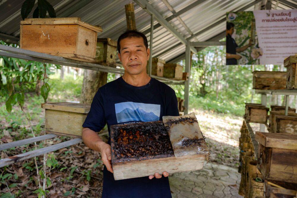 สุธีร์ ปานขวัญ ประธานวิสาหกิจชุมชนเลี้ยงผึ้งบ้านไหนหนัง เล่าว่า “ชุมชนบ้านไหนหนังมุ่งพัฒนาโครงการที่เชื่อมโยงรายได้เข้ากับการฟื้นฟูระบบนิเวศ ทั้งการปลูกพืชพื้นบ้าน การประมงแบบยั่งยืน การท่องเที่ยวเชิงอนุรักษ์ และกลุ่มวิสาหกิจชุมชนเลี้ยงผึ้ง ที่สร้างอาชีพและรายได้ให้ชาวบ้าน ที่จะช่วยรักษาสิ่งแวดล้อมและวิถีชีวิตดั้งเดิมของชุมชนไปพร้อมกัน