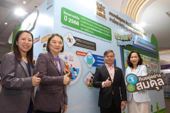 นอกเหนือจากการจัดกิจกรรมอย่างต่อเนื่องแล้ว ในปี 2568 นี้เนสท์เล่ได้สนับสนุนงานวิจัยเพื่อต่อยอดการพัฒนาแนวทางส่งเสริมพฤติกรรมสุขภาพ ลด NCDs ผ่านงานวิจัยโดยสมาคมโภชนาการแห่งประเทศไทย ในพระราชูปถัมภ์สมเด็จพระเทพรัตนราชสุดา ฯ สยามบรมราชกุมารี ซึ่งผลงานวิจัยพบว่า การปรับพฤติกรรมสุขภาพอย่างต่อเนื่องด้วยโครงการภารกิจพิชิตสุขภาพดีในกลุ่มวัยทำงาน สามารถช่วยลดปัจจัยเสี่ยงของโรคไม่ติดต่อเรื้อรังได้ โดยเห็นได้จากดัชนีสุขภาพที่มีการเปลี่ยนแปลงในทิศทางที่ดีขึ้น เช่น ดัชนีมวลกายลดลง และไขมันในช่องท้องลดลง เป็นต้น นอกจากนี้ เนสท์เล่ ยังร่วมแลกเปลี่ยนองค์ความรู้ เผยแพร่ผลงานวิจัยร่วมกับสมาคมโภชนาการแห่งประเทศไทยฯ และกองควบคุมโรคไม่ติดต่อ กรมควบคุมโรค ในเวทีงานประชุมวิชาการโภชนาการแห่งชาติ ครั้งที่ 18 เพื่อผลักดันประเด็นการส่งเสริมพฤติกรรมสุขภาพ กินอยู่อย่างสมดุล ให้เป็นหนึ่งในแนวทางที่ช่วยลดปัจจัยเสี่ยง NCDs ให้คนไทย