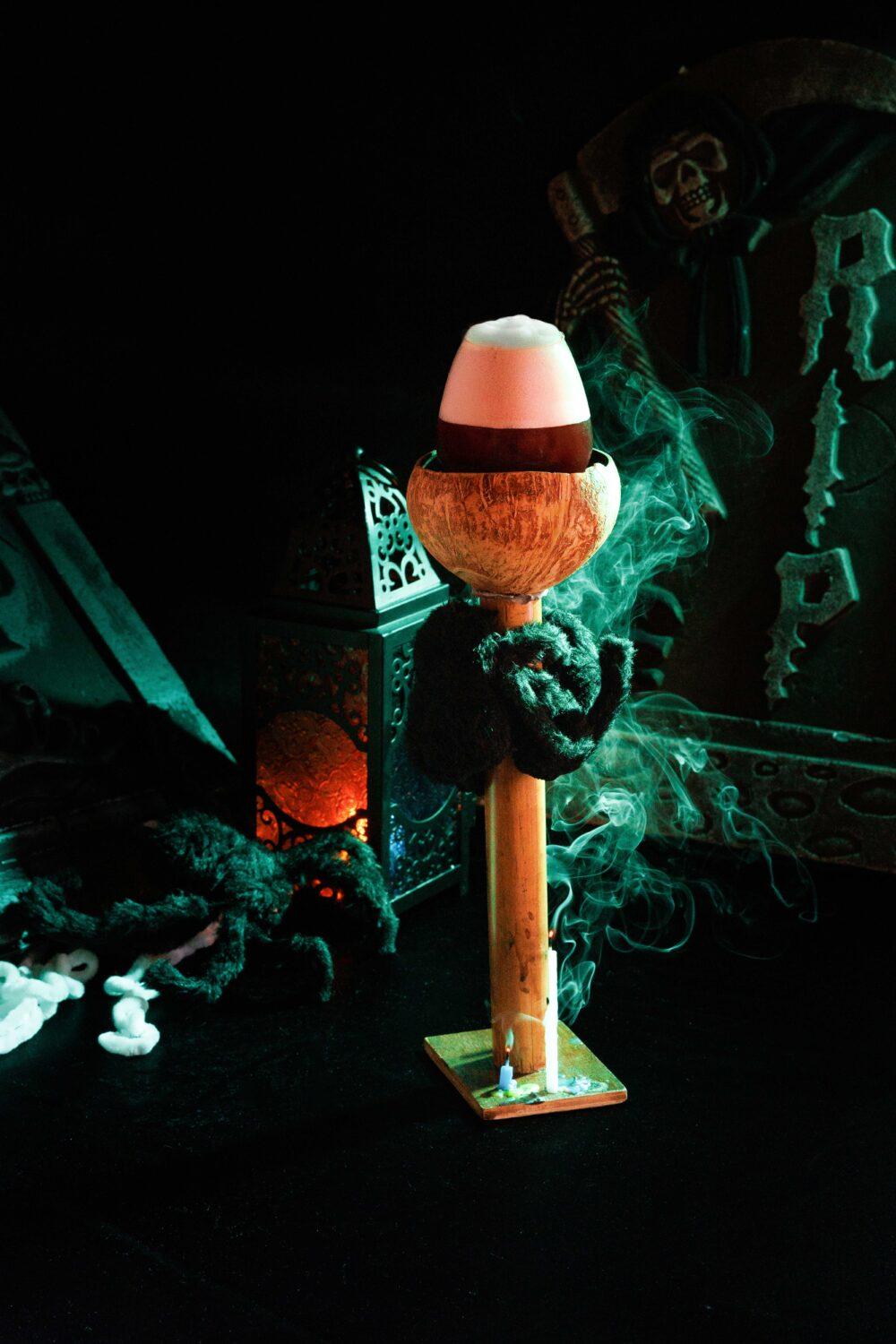 เลดี้ ซอมบี้ (Lady Zombie) ส่วนผสมสุดต้องสะกดจาก โฮเซ่ เควอร์โว (Jose Cuervo) และ ทริปเปิล เซ็ก (Triple Sec) เติมรสด้วยน้ำแครนเบอร์รี น้ำสับปะรด น้ำเชื่อมสตรอว์เบอร์รี และน้ำมะนาว ต่อมาเป็น เดวิลด์ คิส (Devilled Kiss) ค็อกเทลชวนสะดุ้งที่รวมความเข้มของ เรมี่ วี.เอส.โอ.พี (Remy V.S.O.P) กับไวน์แดง น้ำส้ม น้ำเชื่อมลาเวนเดอร์ ส่วน โกสต์ ฟิซซ์ (Ghost Fizz) เป็นเครื่องดื่มไร้แอลกอฮอล์รสละมุนจากซอร์เบตราสเบอร์รี น้ำมะนาว น้ำเชื่อมทับทิม และสไปรท์