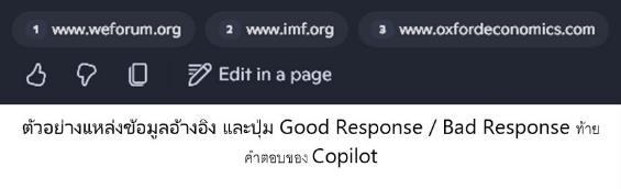 ดังนั้น การทำงานกับ AI ทุกครั้ง นอกจากจะอ่านคำตอบโดยละเอียดแล้ว ยังควรถามหาและตรวจสอบแหล่งที่มาของข้อมูลที่ AI อ้างอิงทุกครั้ง และหากพบว่า AI ให้คำตอบได้ไม่ถูกต้อง ก็ควรแจ้งปัญหาให้ผู้ให้บริการทราบ เช่นผ่านปุ่ม “Bad Response” ใน Copilot เป็นต้น