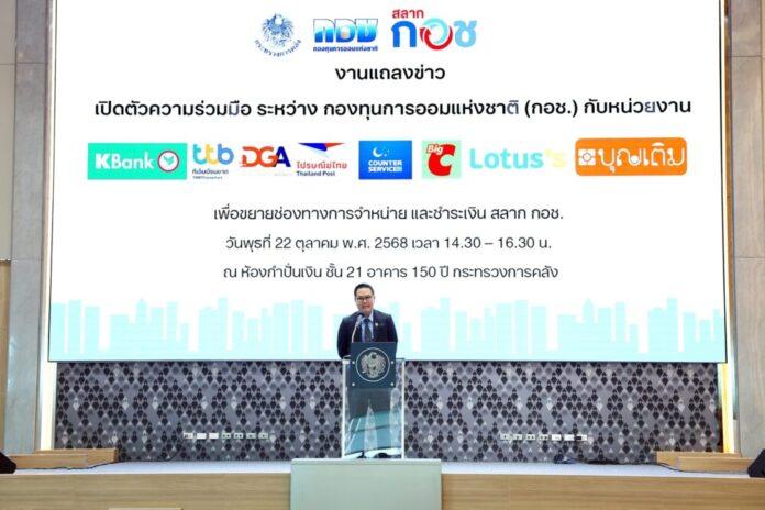 กองทุนการออมแห่งชาติ (กอช.) จับมือหน่วยงานพันธมิตร ขยายช่องทางการจำหน่าย และชำระเงิน สลาก กอช. ยกระดับการออมของคนไทยเข้าสู่โลกดิจิทัล และจุดจำหน่าย ครอบคลุมทุกช่องทาง ให้เป็นเรื่องง่าย ปลอดภัย สนุก และลุ้นรางวัลใหญ่ 1 ล้านบาททุกสัปดาห์ ณ ห้องกำปั่นเงิน ชั้น 21 อาคาร 150 ปี กระทรวงการคลัง