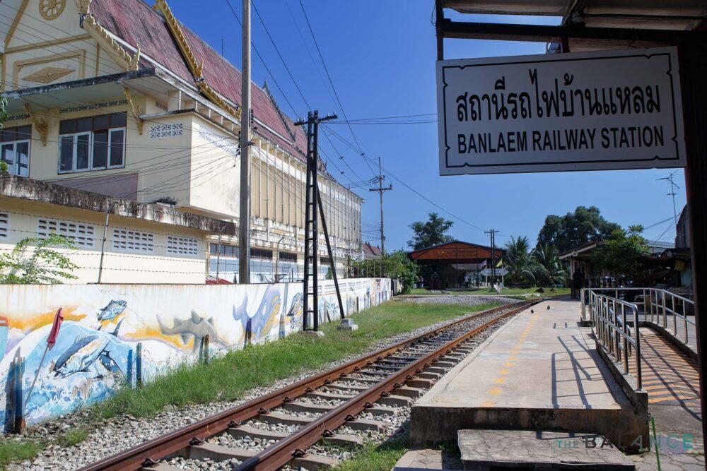 เดินออกจากด้านกำแพงวัดแหลมฯ ออกไปจะพบกับ สถานีรถไฟบ้านแหลม เส้นทางรถไฟสายสั้น ๆ ที่วิ่งจากสถานีบ้านแหลม จ.สมุทรสาคร ไปยังสถานีแม่กลอง จ.สมุทรสงคราม รวมแล้ว 15 สถานี หนึ่งในนั้นคือ สถานีร่มหุบ ที่มีชื่อเสียงนั่นเอง
