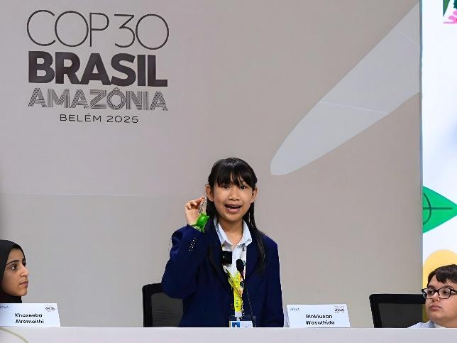 “การได้เข้าร่วมงาน COP30 ครั้งนี้ ทำให้เอวาเข้าใจว่าการเริ่มจากสิ่งเล็ก ๆ ในชีวิตประจำวัน ก็สามารถสร้างการเปลี่ยนแปลงที่ยิ่งใหญ่ได้ เอวาได้เรียนรู้ว่าการสื่อสารภาษาอังกฤษอย่างมั่นใจ ช่วยให้เราแสดงความคิด และถ่ายทอดแนวทางของเราให้โลกได้รับฟังอย่างชัดเจน” น้องเอวา กล่าว