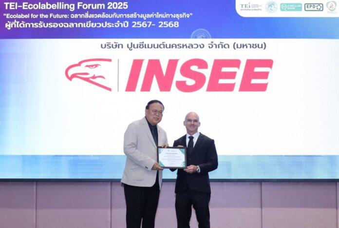 บริษัท ปูนซีเมนต์นครหลวง จำกัด (มหาชน) หรือ ปูนอินทรี โดย เซเรอฟิน บูเจยา รองประธานอาวุโส สายงานกิจการสระบุรี บริษัท ปูนซีเมนต์นครหลวง จำกัด (มหาชน) รับมอบเกียรติบัตรการรับรองฉลากเขียว “ฉลากสิ่งแวดล้อมกับการสร้างมูลค่าใหม่ทางธุรกิจ” (Ecolabel for the Future) จากสถาบันสิ่งแวดล้อมไทย (TEI) ในงาน TEI-Ecolabelling Forum 2025 โดยมี ดร.วิจารย์ สิมาฉายา ผู้อำนวยการสถาบันสิ่งแวดล้อมไทย เป็นผู้มอบ ณ สถาบันสิ่งแวดล้อมไทย (TEI)