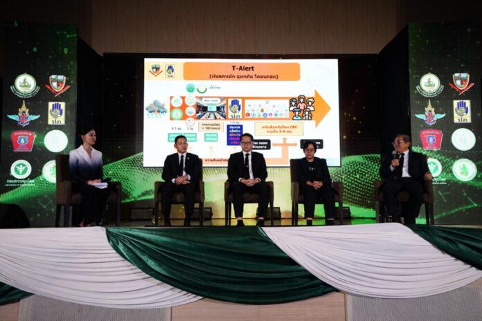 ด้านพลอย เจริญสมตำแหน่ง ผู้ช่วยผู้อำนวยการสำนักงาน พัฒนาธุรกรรมทางอิเล็กทรอนิกส์ (สพธอ.) หรือ ETDA กล่าวว่าหนึ่งในบทบาทสำคัญของหน่วยงาน คือการกำกับดูแลธุรกิจแพลตฟอร์มและสื่อออนไลน์ โดยเฉพาะโซเชียลมีเดียและบริการแชทต่าง ๆ โดยปัจจุบันมีส่วนเกี่ยวข้องกับการสื่อสารด้านสาธารณภัยอย่างมาก โดย ETDA ทำหน้าที่เป็นช่องทางประสานให้ผู้ประกอบการเผยแพร่ข้อมูลที่ถูกต้องไปยังประชาชนได้รวดเร็ว ครอบคลุม และปลอดภัย เพื่อเพิ่มประสิทธิภาพของการสื่อสารในสถานการณ์ฉุกเฉิน และทำให้เครื่องมือที่ประชาชนใช้ในชีวิตประจำวันสามารถรองรับการแจ้งเตือนภัยได้อย่างมีประสิทธิผลสูงสุด