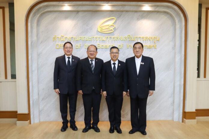 นฤตม์ เทอดสถีรศักดิ์ เลขาธิการคณะกรรมการส่งเสริมการลงทุน (บีโอไอ) เปิดเผยว่า เมื่อวันที่ 8 ธันวาคม 2568 คณะกรรมการร่วมภาคเอกชน 3 สถาบัน (กกร.) นำโดย พจน์ อร่ามวัฒนานนท์ ประธานกรรมการสภาหอการค้าแห่งประเทศไทย เกรียงไกร เธียรนุกุล ประธานสภาอุตสาหกรรมแห่งประเทศไทย และ ผยง ศรีวณิช ประธานสมาคมธนาคารไทย ได้เข้าพบหารือกับบีโอไอ เพื่อร่วมกันผลักดัน “มาตรการสนับสนุนผู้ประกอบการไทยเพื่อเพิ่มขีดความสามารถในการแข่งขัน” ซึ่งเป็นมาตรการที่บีโอไอจะให้ เงินสนับสนุนผ่านกองทุนเพิ่มขีดความสามารถในการแข่งขันของประเทศฯ แก่ผู้ประกอบการไทย เพื่อยกระดับประสิทธิภาพธุรกิจด้วยเทคโนโลยีสมัยใหม่ การวิจัยและพัฒนา (R&D) และการปรับเปลี่ยนสู่อุตสาหกรรมสีเขียว เพื่อเพิ่มศักยภาพในการแข่งขันและขยายโอกาสการเติบโตของธุรกิจในอนาคต