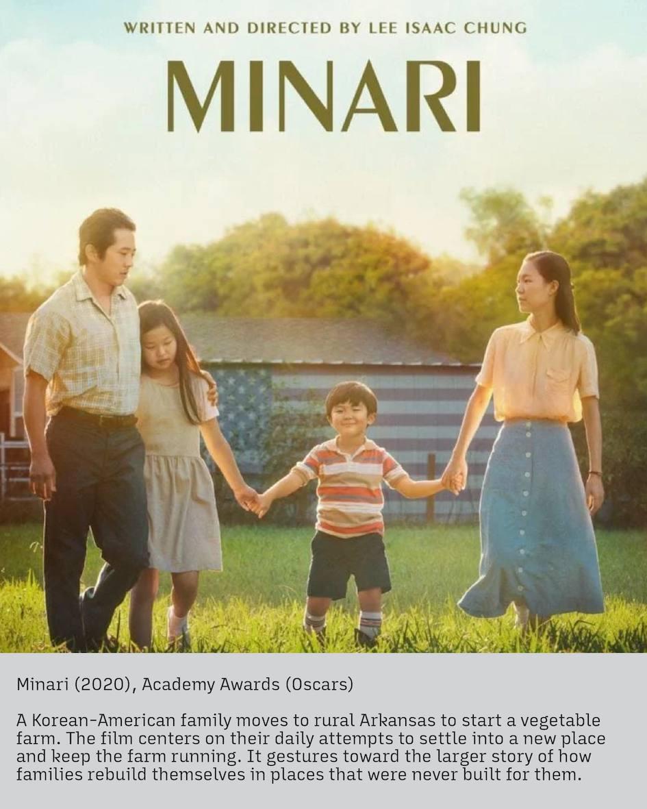 เรื่องราวของครอบครัวชาวเกาหลี-อเมริกันที่ตัดสินใจย้ายสู่ชนบทอาร์คันซอเพื่อเริ่มต้นฟาร์มเล็ก ๆ ของตัวเอง ภาพยนตร์ถ่ายทอดทั้งความหวัง ความท้าทาย และการปรับตัวในดินแดนที่ไม่คุ้นเคย พร้อมสะท้อนให้เห็นว่าครอบครัวหนึ่งสามารถสร้าง “บ้าน” ขึ้นมาใหม่ได้อย่างไร แม้ในสถานที่ซึ่งดูเหมือนไม่ได้ถูกเตรียมไว้สำหรับพวกเขาก็ตาม