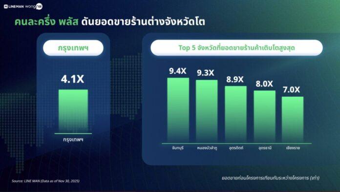 LINE MAN Wongnai เปิดเผยสัญญาณฟื้นตัวของธุรกิจร้านอาหารในไทยปลายปี 2025 หลังผ่านครึ่งปีแรก ที่ซบเซาหนัก จากกำลังซื้อที่อ่อนแรง ต้นทุนอาหารสูง ข้อมูลล่าสุดจาก Wongnai POS (ยอดขายหน้าร้าน) และแพลตฟอร์ม LINE MAN (ยอดขายเดลิเวอรี) สะท้อนว่า “คนละครึ่ง พลัส” ช่วยกระตุ้นกำลังซื้อและอัดฉีดร้านเล็กให้โตได้จริง โดยเฉพาะจังหวัดเมืองรองมียอดขายเติบโตพุ่งขึ้นเป็นประวัติการณ์ สวนทางย่านเศรษฐกิจในกรุงเทพฯ