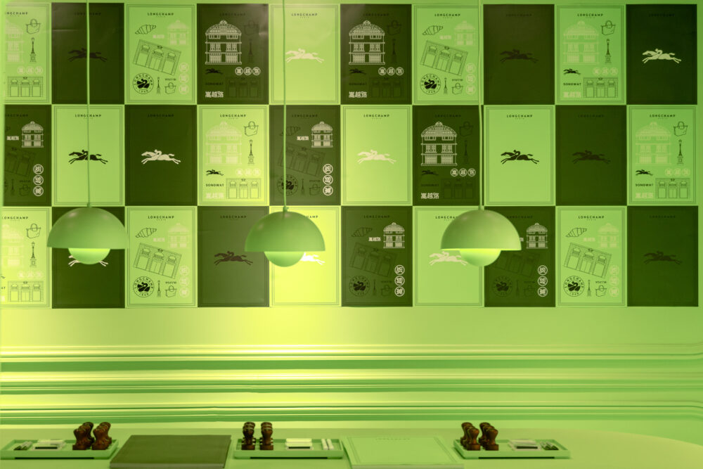 ทันทีที่ก้าวเข้าสู่ป็อปอัป จะได้พบกับโลกสีเขียวตั้งแต่พื้นจรดเพดาน ซึ่งไม่ใช่เพียงสีประจำแบรนด์เท่านั้น แต่ยังเป็นสัญลักษณ์ของความหวังและตัวตนที่ลองฌองป์ยึดถือมาตลอดหลายทศวรรษ โดยสีเขียวเข้ม (Heritage Green) ให้ความรู้สึกสง่างามเหนือกาลเวลาและความเป็นธรรมชาติ ส่วนสีเขียวอ่อน (Light Green) สะท้อนการถ่ายทอดคิดสร้างสรรค์และความกล้าที่จะค้นหาสิ่งใหม่ ๆ โดยทุกมุมมีการดีไซน์ให้มีลูกเล่นชวนสำรวจ เชื่อมโยงกับมรดกและจิตวิญญาณของแบรนด์อย่างลงตัว