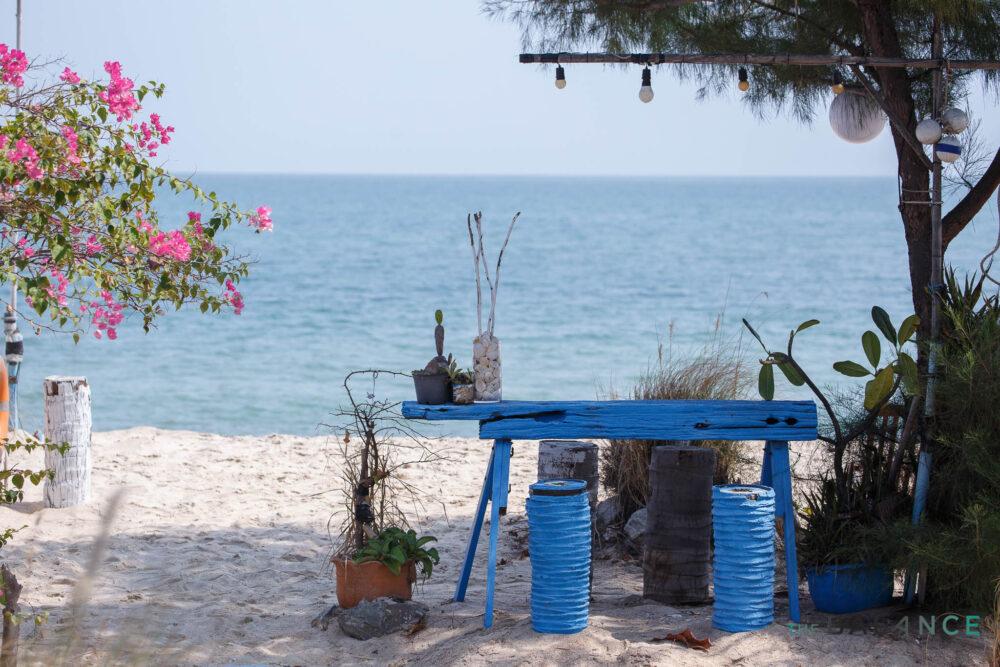 ช่วงเย็นย่ำไปถึงค่ำคืน แนะนำ Beach Bar ร้านโทนสีฟ้าที่คาดว่าจะถูกใจสายอาร์ต แค่เดินผ่านก็ได้ยินเสียงเพลงเพราะ ๆ เบา ๆ