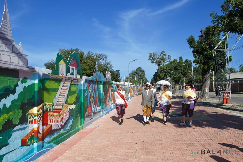 แต่งตัวสวยหล่อกันแล้ว ก่อนจะขึ้นเขาวัง อันเป็นสถานที่จัดงาน เราแวะเดินเล่นกันที่สตรีทอาร์ตเพชรบุรี Panorama Street Art ที่ยาวที่สุดในจังหวัดเพชรบุรี บริเวณ ถ.ดำรงรักษ์ (ใกล้วังบ้านปืน)