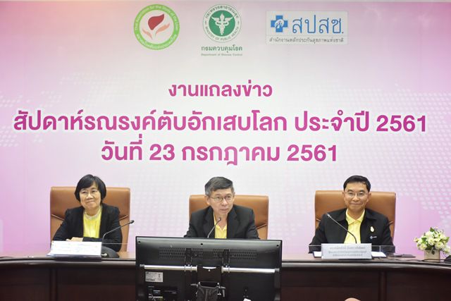 รายงานล่าสุด จากกรมควบคุมโรค ร่วมกับสมาคมโรคตับแห่งประเทศไทย และสำนักงานหลักประกันสุขภาพแห่งชาติ ในงานแถลงข่าวสัปดาห์รณรงค์ตับอักเสบโลก ได้เชิญชวนประชาชนเข้ารับการตรวจคัดกรองโรคไวรัสตับอักเสบบีและซี ได้ฟรี ระหว่างวันที่ 31 กรกฎาคม ถึง 3 สิงหาคม 2561 ใน 83 โรงพยาบาลสังกัดกระทรวงสาธารณสุขทั่วประเทศ