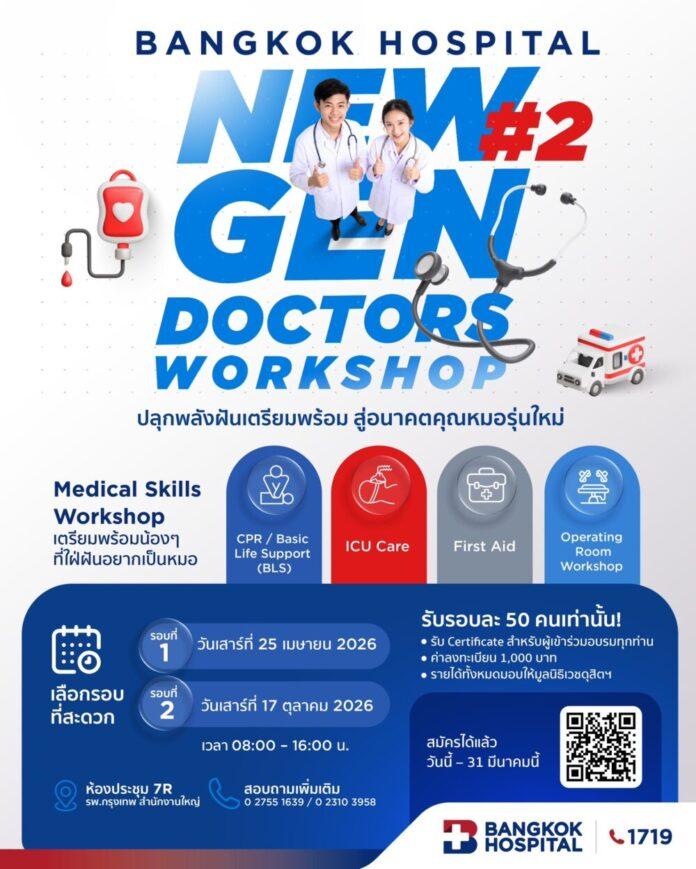 รพ.กรุงเทพ สำนักงานใหญ่ เปิดรับสมัครน้อง ๆ มัธยมต้นและมัธยมปลายเข้าร่วมโครงการ Bangkok Hospital New Gen Doctors Workshop #2 ปลุกพลังฝันเตรียมพร้อมสู่อนาคตคุณหมอรุ่นใหม่ ปีที่ 2 มาร่วมฝึก Medical Skills Workshop เตรียมความพร้อม สำหรับน้อง ๆ มัธยมต้นและมัธยมปลายที่ใฝ่ฝันอยากเป็นหมอ