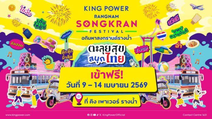 คิง เพาเวอร์ จึงตั้งเป้ายกระดับ “อภิมหาสงกรานต์รางน้ำ” ให้เป็นหนึ่งในแลนด์มาร์กการเล่นน้ำของประเทศ และร่วมผลักดันสงกรานต์ไทยสู่เวทีสากล ผ่านงาน “อภิมหาสงกรานต์รางน้ำ THE JOY OF THAI ตะลุยสุข สนุกไทย” ที่ผสานอัตลักษณ์ไทยกับเทศกาลดนตรีรูปแบบ POP-CULTURE FESTIVAL รวมร้านอาหารดัง โปรโมชัน และกิจกรรมหลากหลาย เพื่อดึงดูดนักท่องเที่ยวทั้งไทยและต่างชาติ สร้างความคึกคักทางการท่องเที่ยว ควบคู่กับการกระจายรายได้สู่ผู้ประกอบการและชุมชนในย่านรางน้ำ เสริมศักยภาพเศรษฐกิจในไตรมาส 2 และสนับสนุนการเติบโตของการท่องเที่ยวไทยอย่างยั่งยืน”