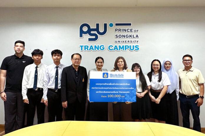 ผศ. ดร.ปาริชาติ มณีมัย คณบดีคณะพาณิชยศาสตร์และการจั ดการ มหาวิทยาลัยสงขลานครินทร์ วิทยาเขตตรัง รับมอบทุนการศึกษา มูลค่า 100,000 บาท จากบริษัท วิริยะประกันภัย จำกัด (มหาชน) โดยมี เสาวคนธ์ วงศ์กองแสง ผู้จัดการฝ่ายปฏิบัติการภาค 5 (ภาคใต้) ด้านสาขา เป็นผู้แทนมอบ เพื่อส่งเสริมโอกาสทางการศึ กษาให้แก่นักศึกษาชั้นปีที่ 1 ในหลักสูตรด้านประกันภั ยและการจัดการความเสี่ยง สาขาการบริหารธุรกิจประกันภั ยและการจัดการความเสี่ยง สามารถพัฒนาศักยภาพการเรียนรู้ ของตนเองได้อย่างมีประสิทธิภาพ โดยมี ผศ. ดร.พงษ์พิช เพชรสกุลวงศ์ ประธานหลักสูตรบริหารธุรกิจบั ณฑิต สาขาการบริหารธุรกิจประกันภั ยและการจัดการความเสี่ยง และผศ. ดร.ณรงค์ฤทธิ์ ปริสุทธิ์กุล ผู้ช่วยอธิการบดีฝ่ายวิ ชาการและวิจัย ร่วมเป็นเกียรติในพิธีมอบ ณ ห้องประชุม MBA มหาวิทยาลัยสงขลานครินทร์ วิทยาเขตตรัง