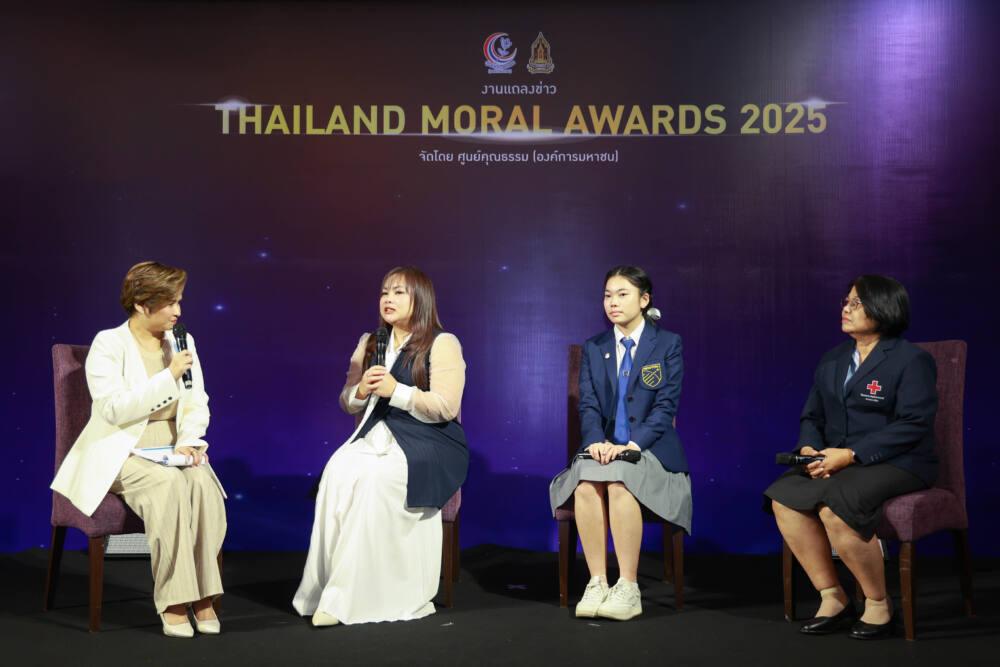 ในงานแถลงข่าวรางวัล THAILAND MORAL AWARDS 2025 ยังมีกิจกรรมเสวนา จากผู้ได้รับรางวัลในปี 2024 ผู้แทนรางวัลประเภทบุคคล คุณวิชญาดา รักกสิกร ผู้ร่วมก่อตั้งกลุ่ม Heart 2 Heart Charity ที่ชวนเยาวชนทำกิจกรรมสาธารณประโยชน์ ผู้แทนรางวัลประเภทชุมชนและองค์กร จากฝ่ายการพยาบาล โรงพยาบาลจุฬาลงกรณ์ สภากาชาดไทย คุณเอื้องพร เผ่าเจริญ ผู้ช่วยหัวหน้าพยาบาลด้านทรัพยากรบุคคล และผู้แทนรางวัลประเภทสื่อ โดย คุณพรวิรุณ แก้วทอง Director of learning business บริษัท T&B Media Global Thailand จาก แอนิเมชันซีรีส์ สติมา “เณรน้อยอัจฉริยะ”